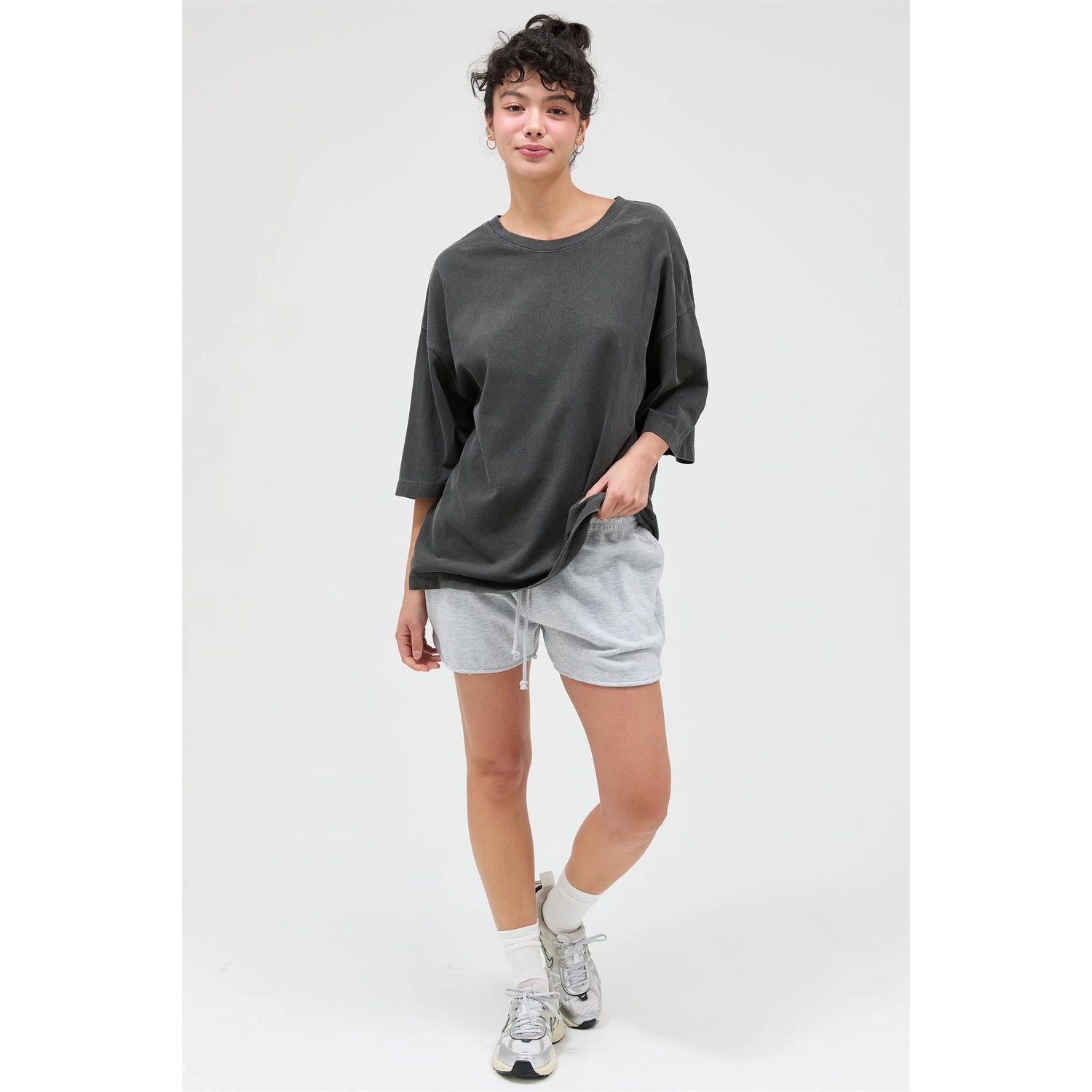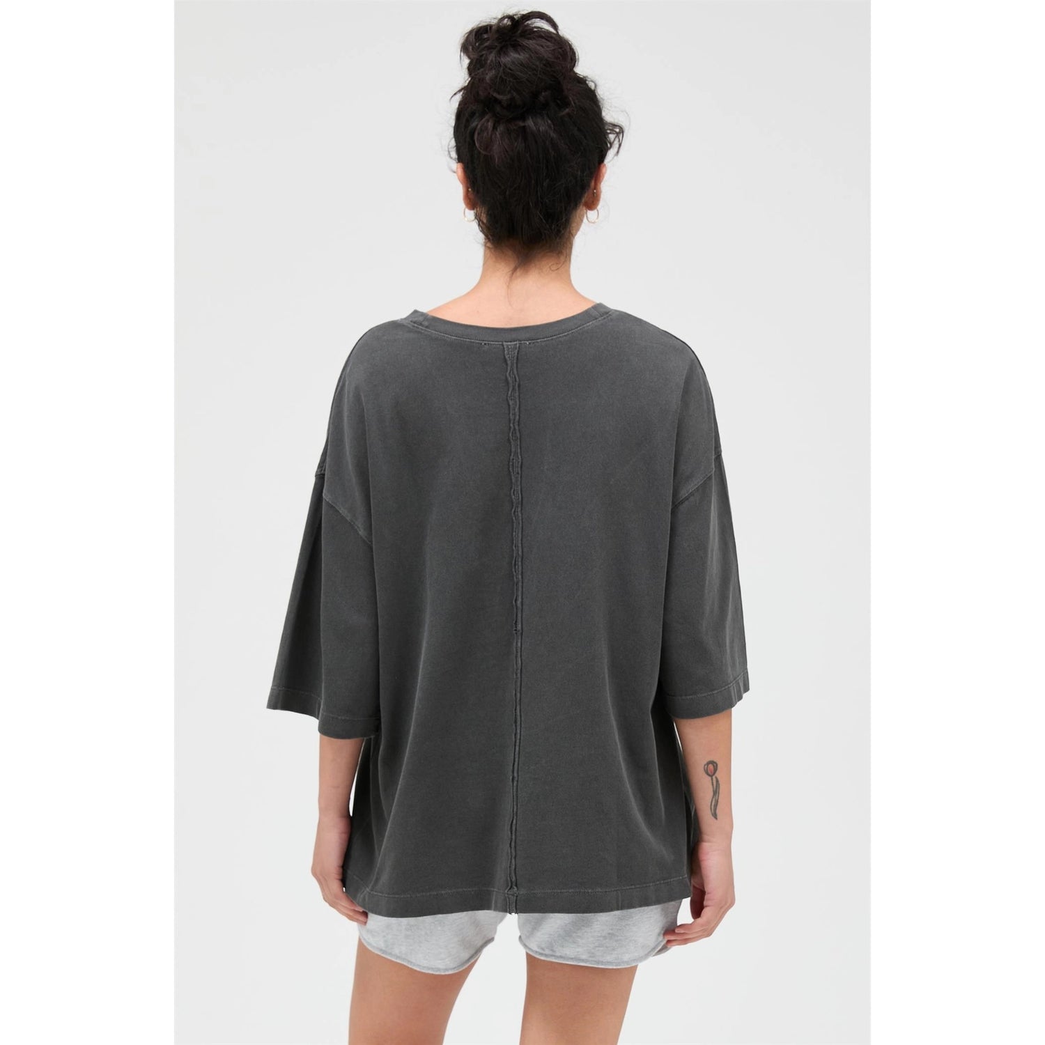 This pigment-dyed cotton T-shirt offers vintage-inspired style with a classic crew neckline and dropped shoulders with comfortable, wide sleeves. Cut in an oversized, tunic fit and asn exposed center back seam, this piece can be paired with denim shorts and sneakers for an effortlessly cool, easygoing look. 100% Cotton