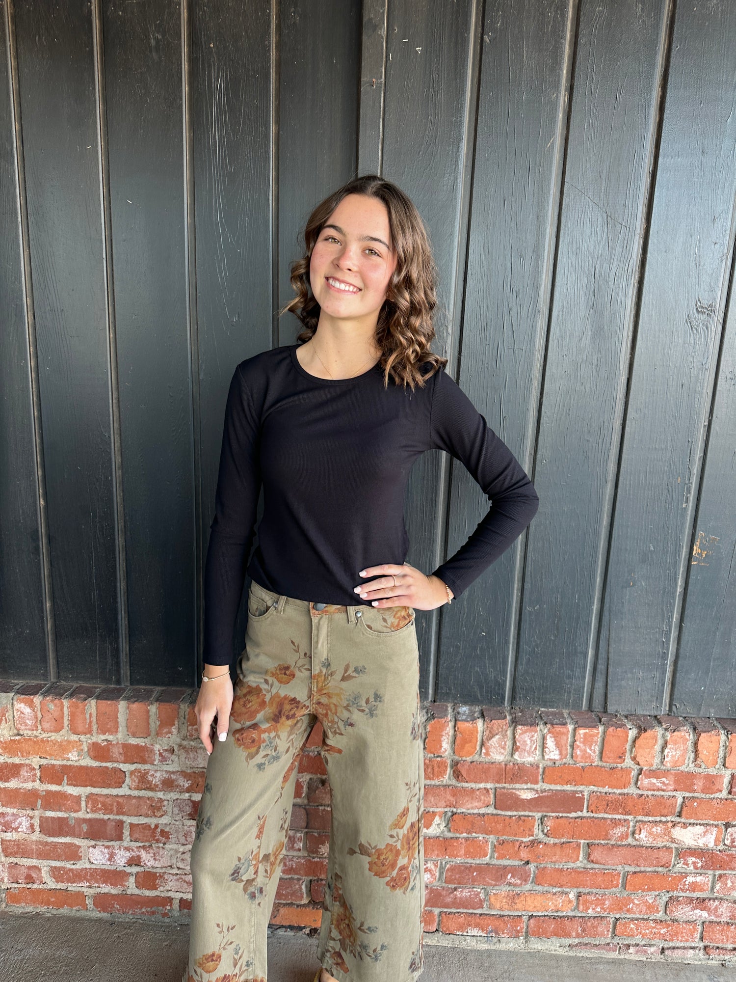 Sleek, simple, and irresistibly soft this Top is like you are wearing a Second Skin. This long sleeve top is your new layering essential. Made from a fine ribbed Fabric, this fitted silhouette hugs the body just right while offering breathable comfort and subtle stretch. The crew neckline and long sleeves keep it classic and modern. Wear it solo for a clean look or layer it under jackets and cardigans for effortless style year-round.