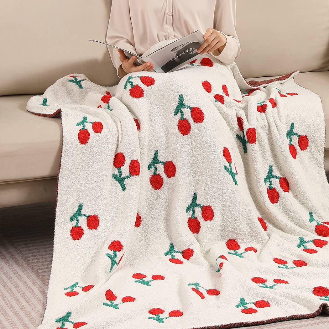 Cherry Pattern Print Cozy Soft Throw Blanket
