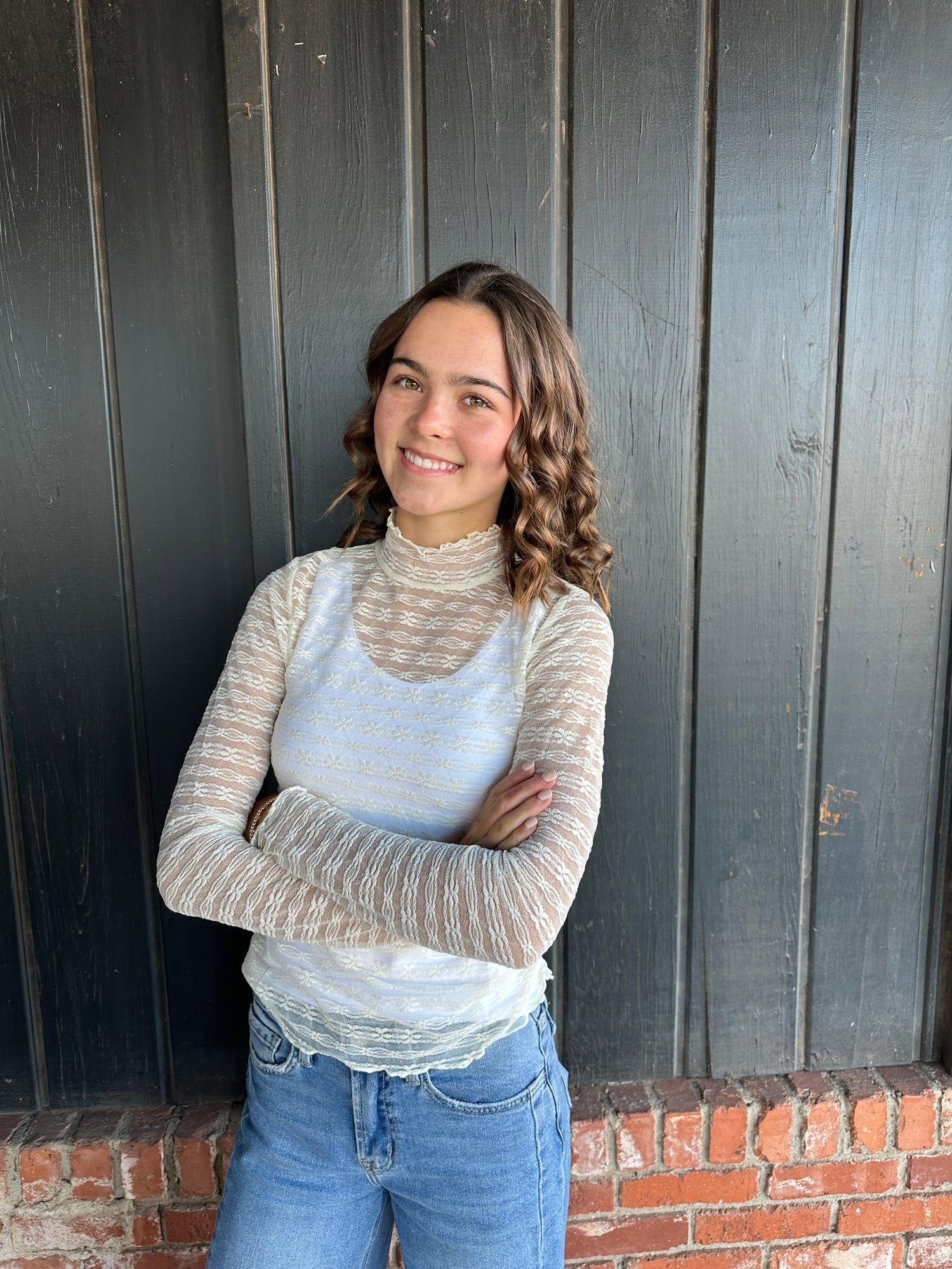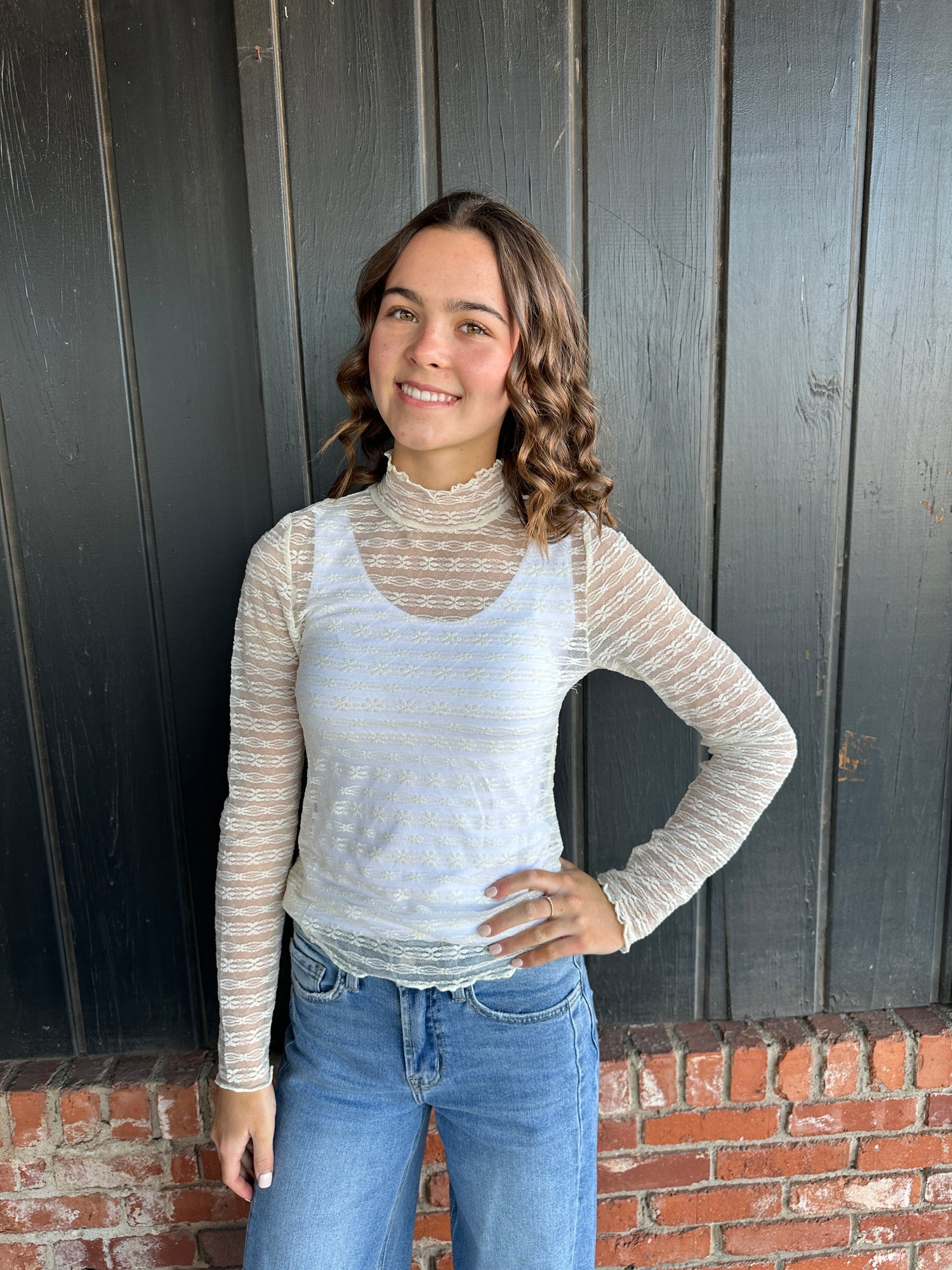 -LACE KNIT FABRIC -MOCK NECK -LONG SLEEVE -FITTED