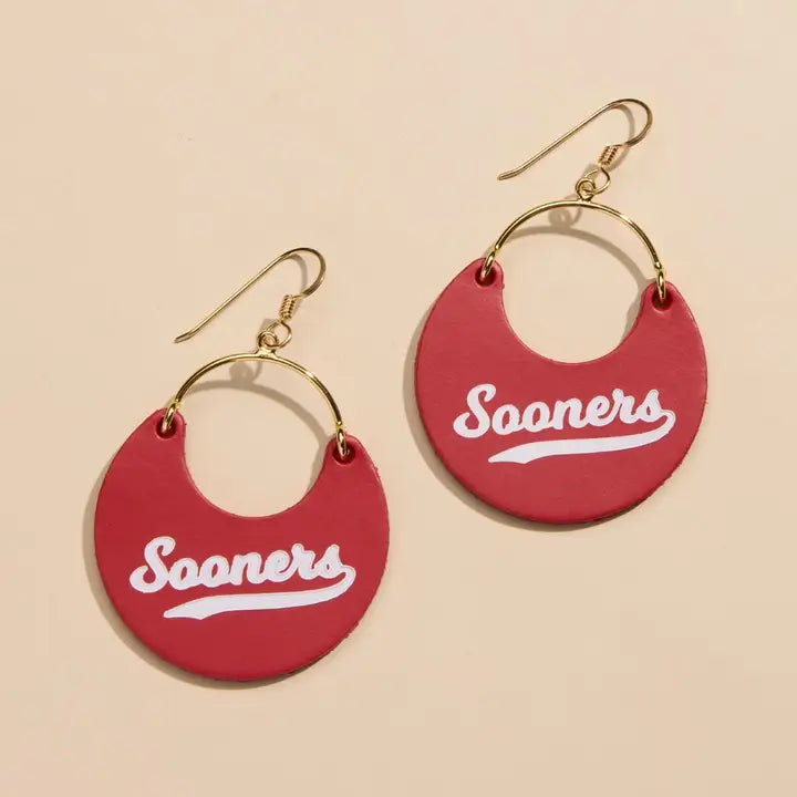 Get ready for gameday with our University of Oklahoma Sooners Nina leather earrings. This spirited earring is officially licensed and perfect for showing off your team pride. Our earrings are crafted and hand-embossed in Kansas City from premium Italian leather for a standout look. Choose from 14k gold-filled or rhodium-plated sterling silver ear wires for all-day hypoallergenic comfort from the tailgate to the post-game celebration. • Premium Italian leather – Lightweight and durable for all-day wear • Hand-embossed in the USA – Quality craftsmanship from Kansas City • Officially licensed and perfect for gameday, graduation, and everyday team pride