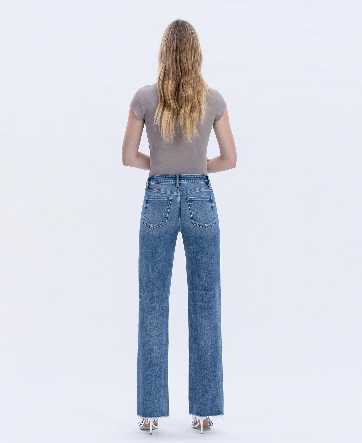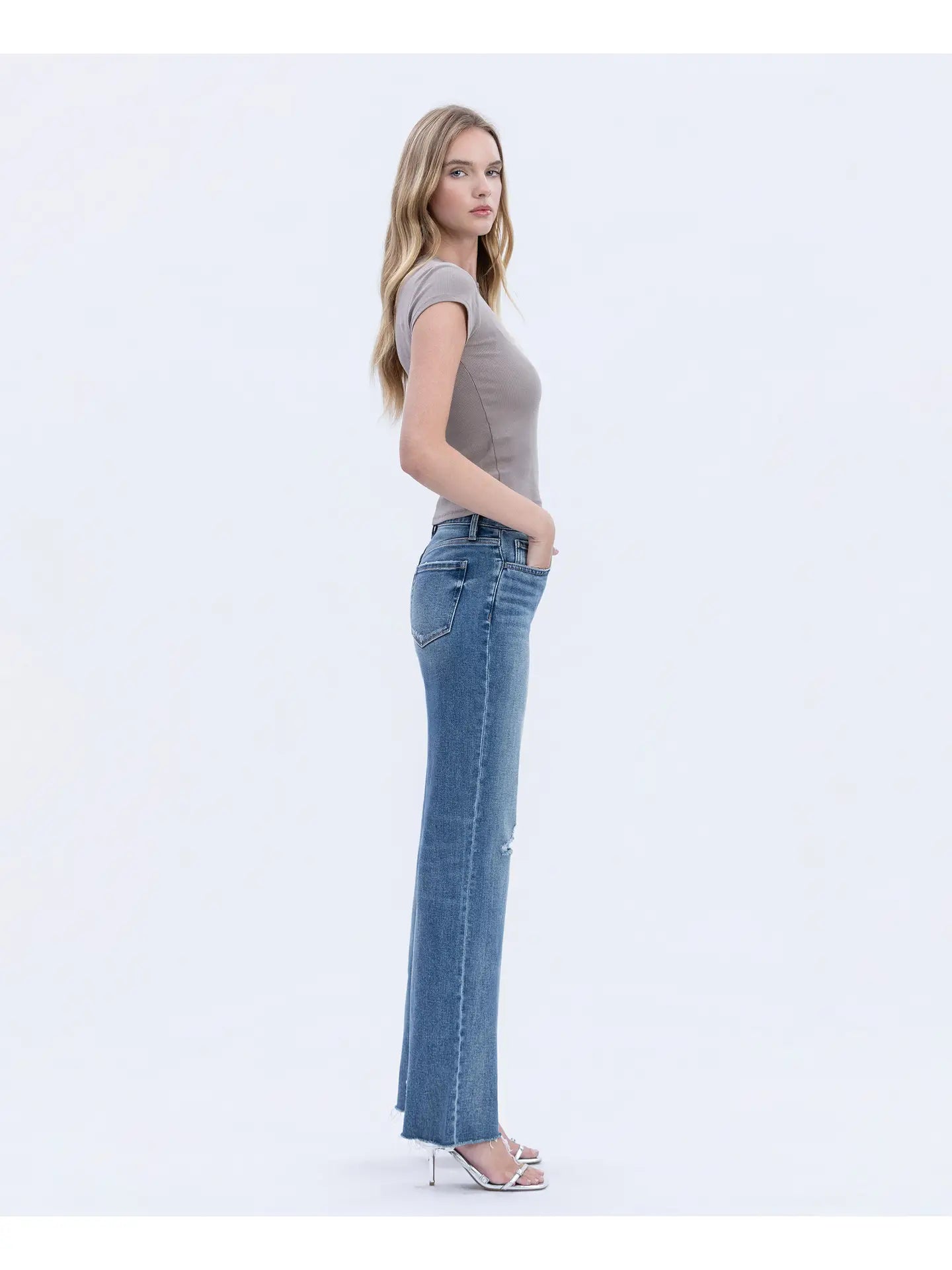 Flying Monkey High Rise Frayed Hem Slim Wide Jeans