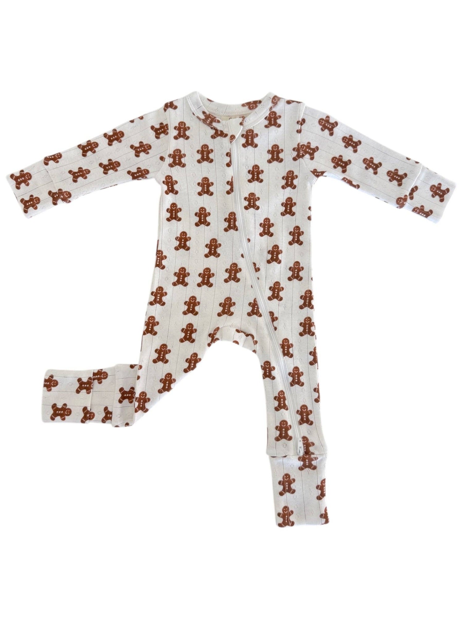 Gingerbread / Organic Pointelle 2-Way Zip Romper