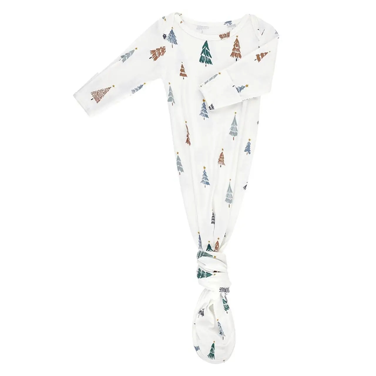 Wrap your little one this holiday season in this adorable knotted gown, printed with festive trees for baby's first Christmas. •Made of super soft bamboo blend fabric •Features a convenient knot at the bottom for easy nighttime changes •Fold-over cuffs on sleeves