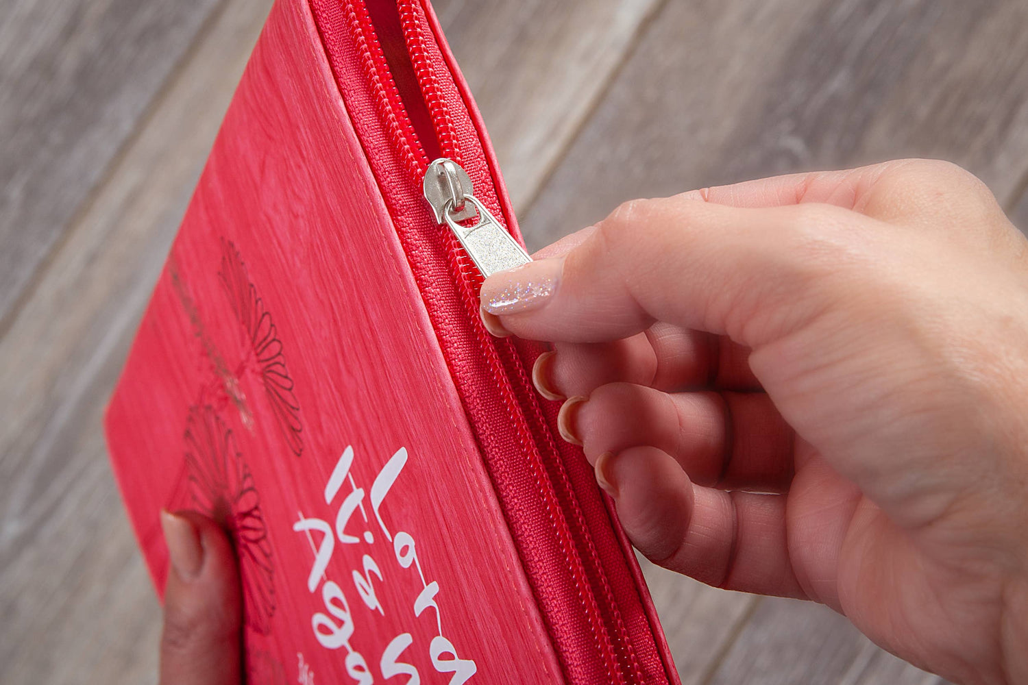 Features: imitation leather, 368 pages, ribbon marker, zippered cover