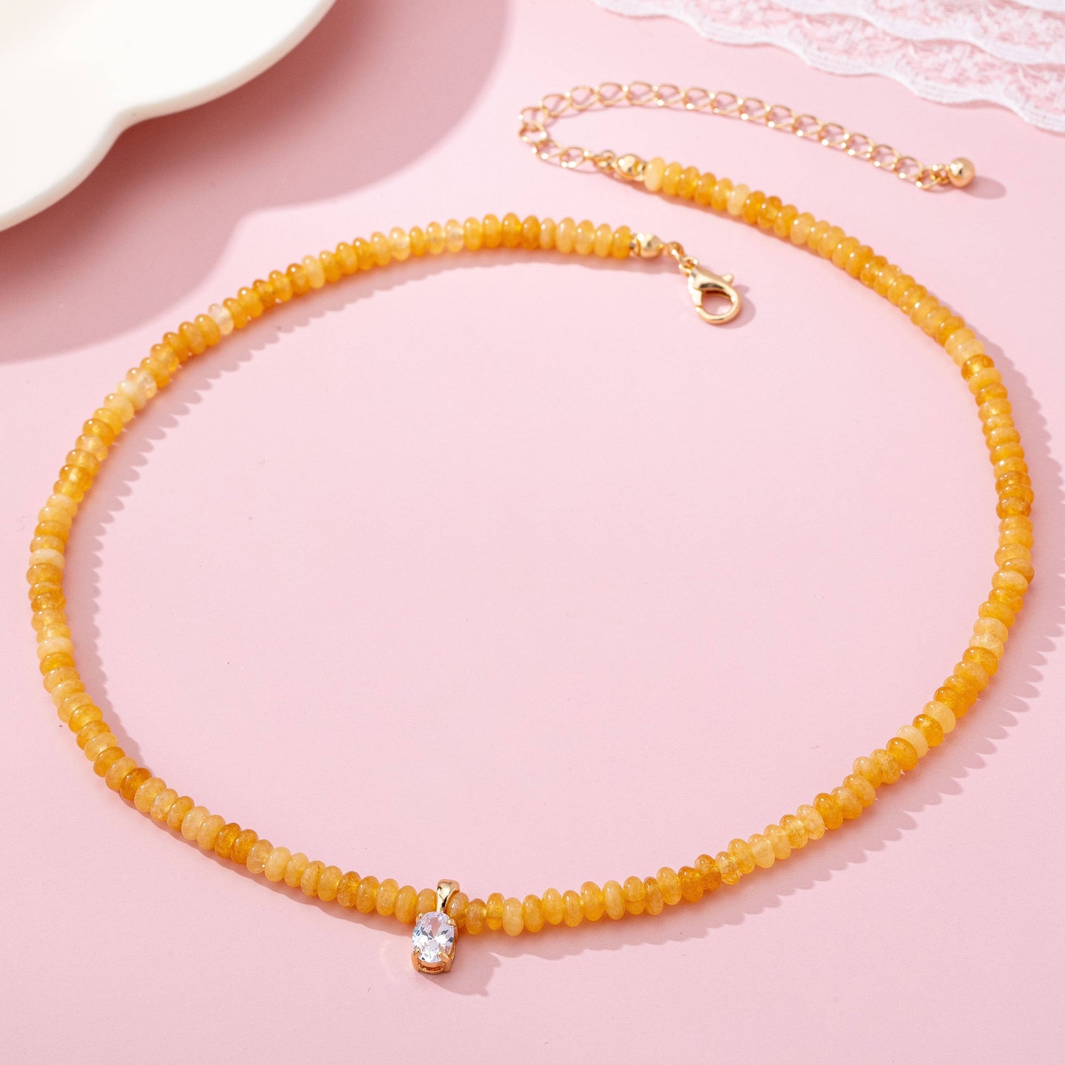 Natural Semi-Precious Stone Beaded Necklace is adorned with carefully selected rhinestone, adding a touch of elegance and meaning to its design. Featuring high-quality semi-precious stone beads, this necklace blends natural beauty with timeless charm.
