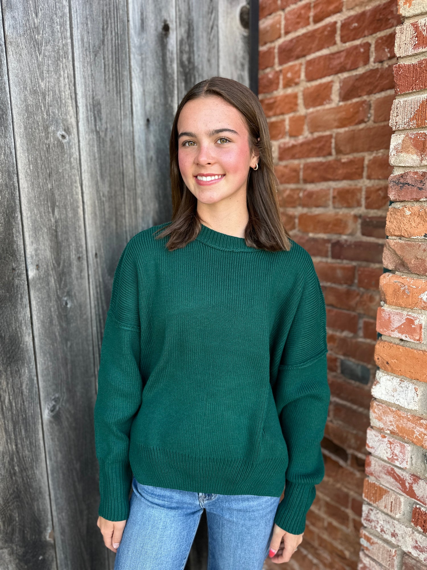 Oversized ribbed sweater with a crew neck, drop shoulders, and side slits at the hem for ease of movement. Features seam details on armholes and shoulders. Relaxed fit perfect for casual or cozy looks. Pair with slim jeans and ankle boots or layer over a collared shirt for a polished touch. Ideal for transitional weather.