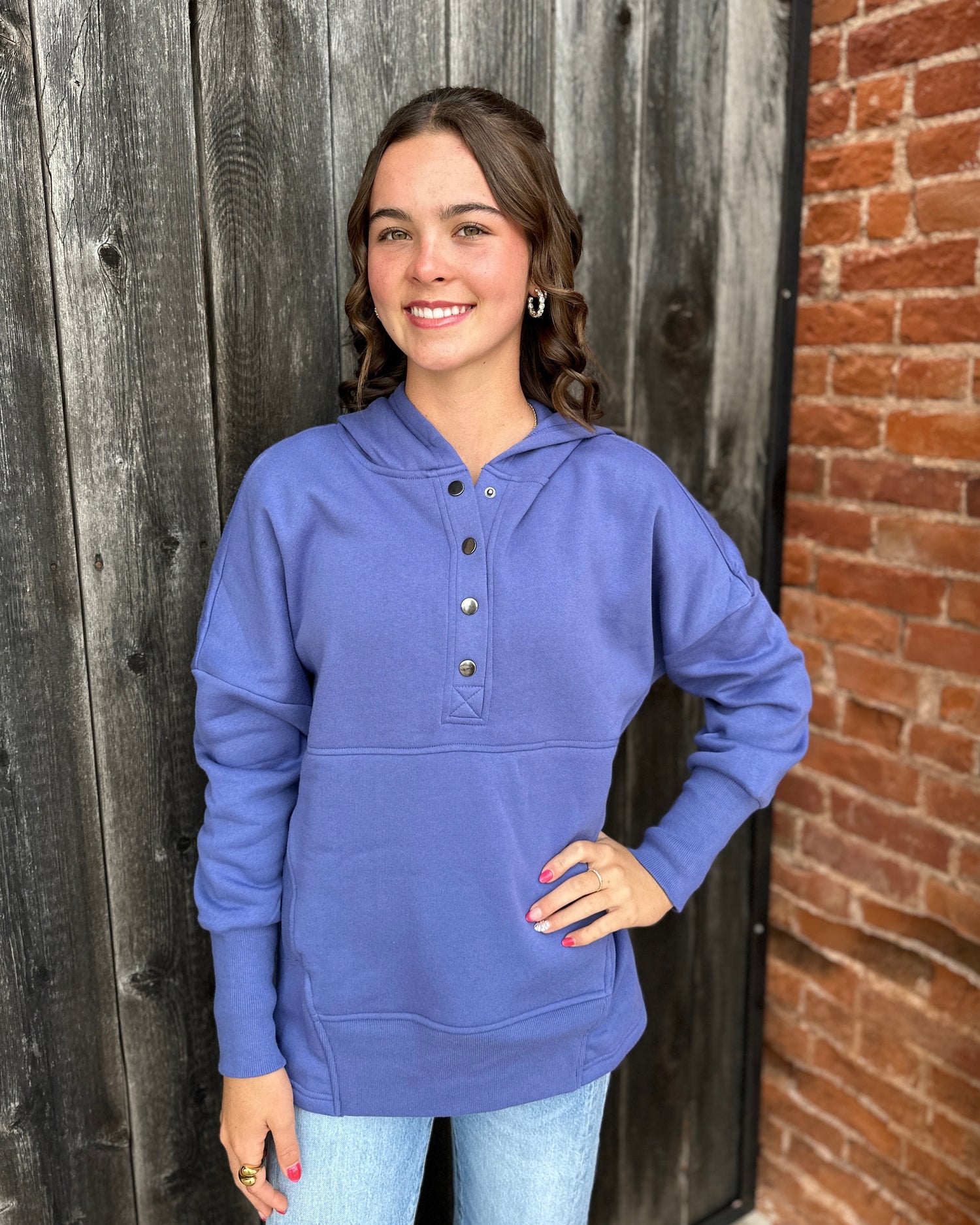 Periwinkle Half Snap Button Hooded Sweatshirt