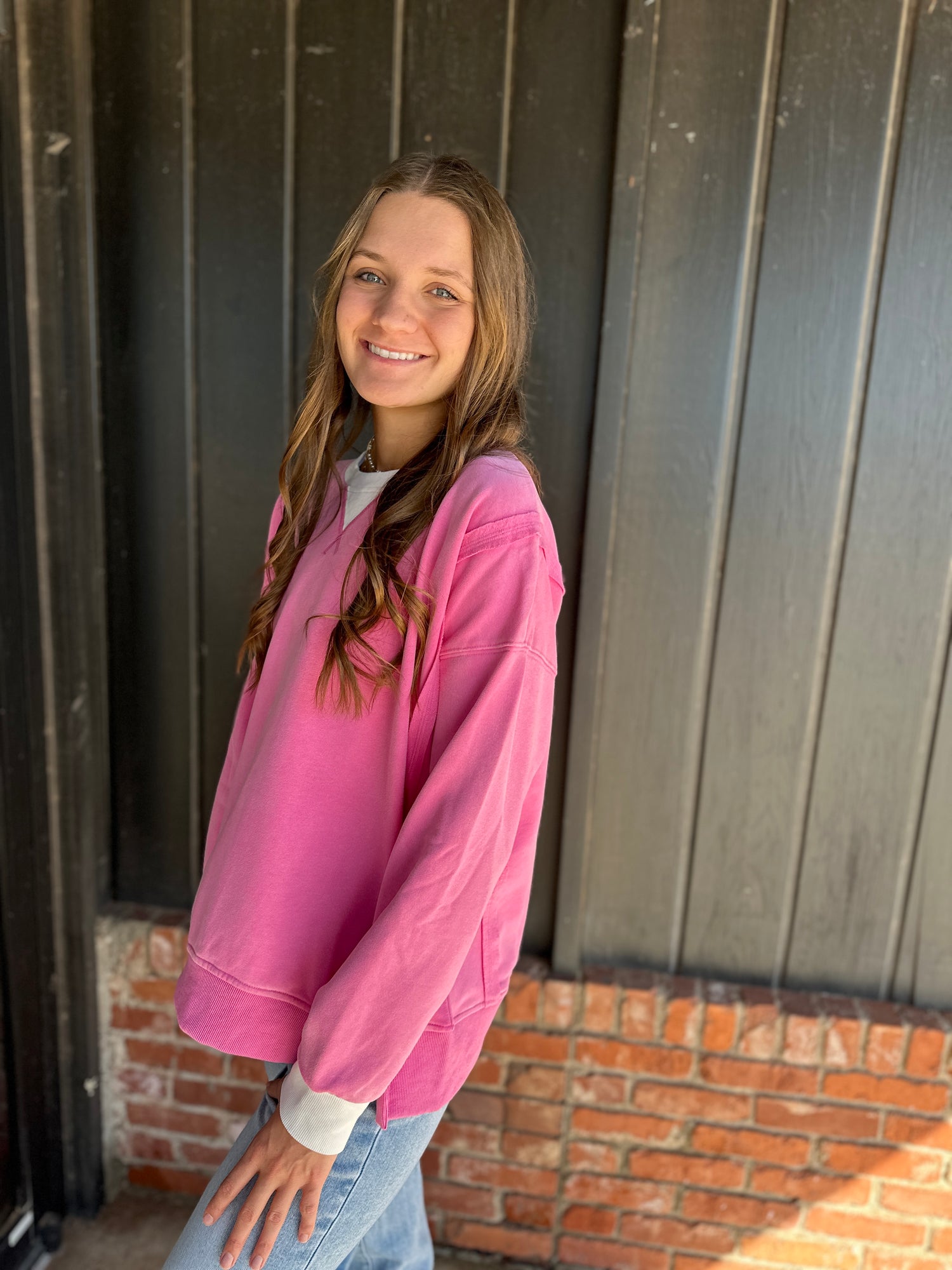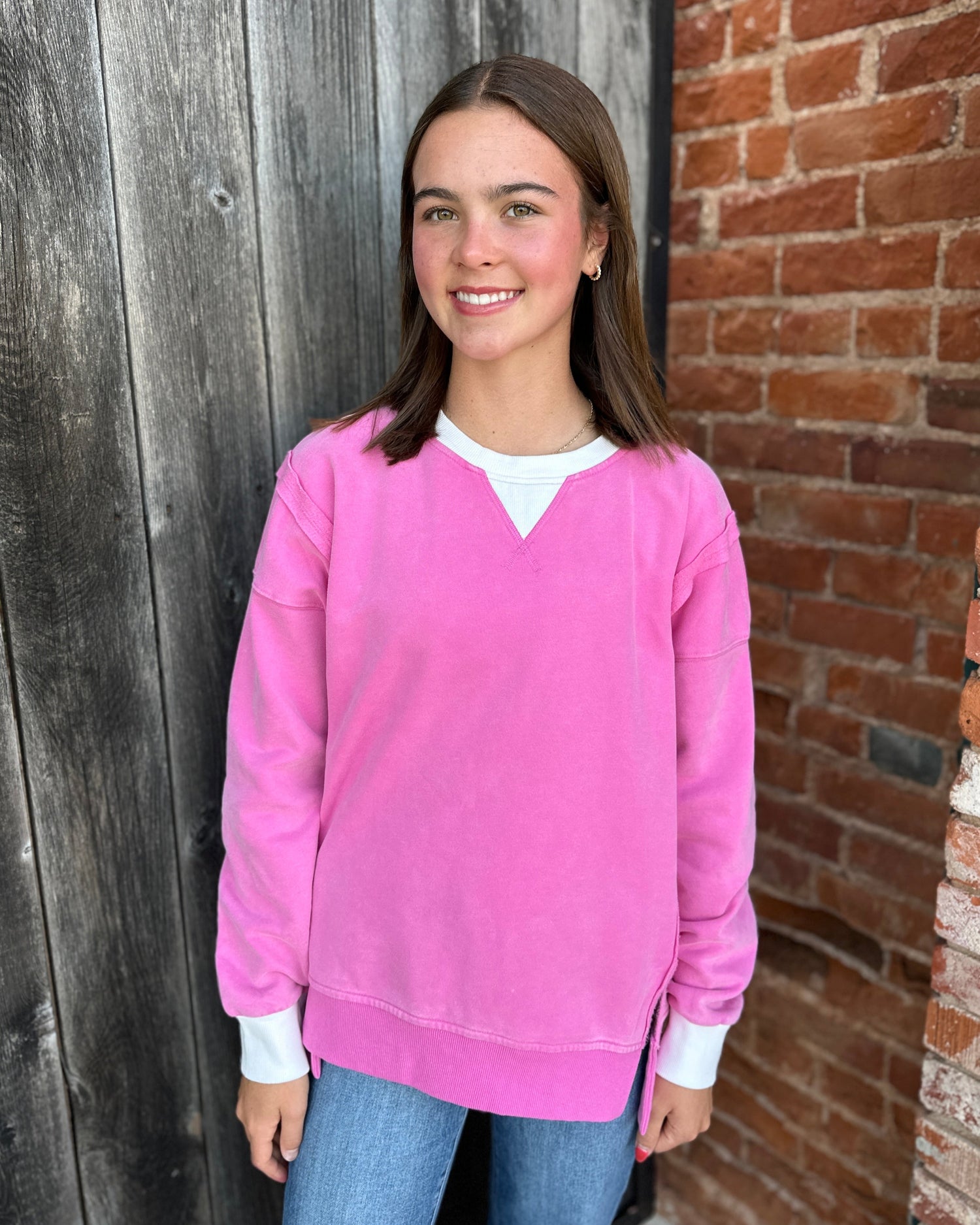 Pink Color Block Snow Wash Oversized Sweatshirt