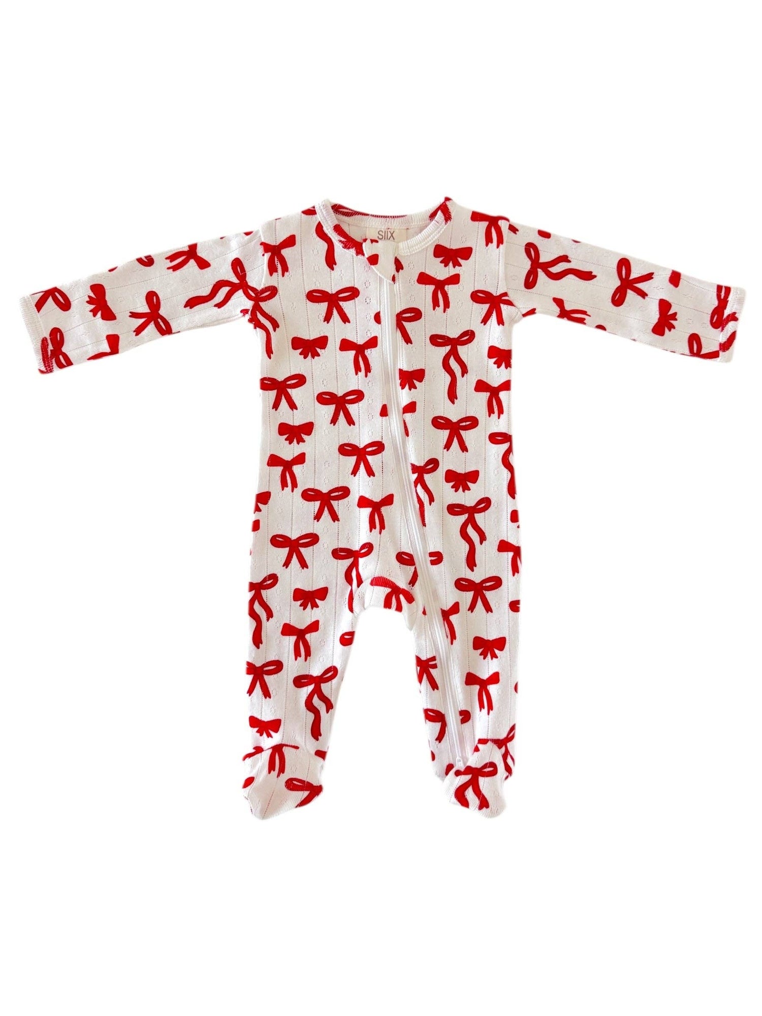 Red Bows / Organic Pointelle 2-Way Zip Footie