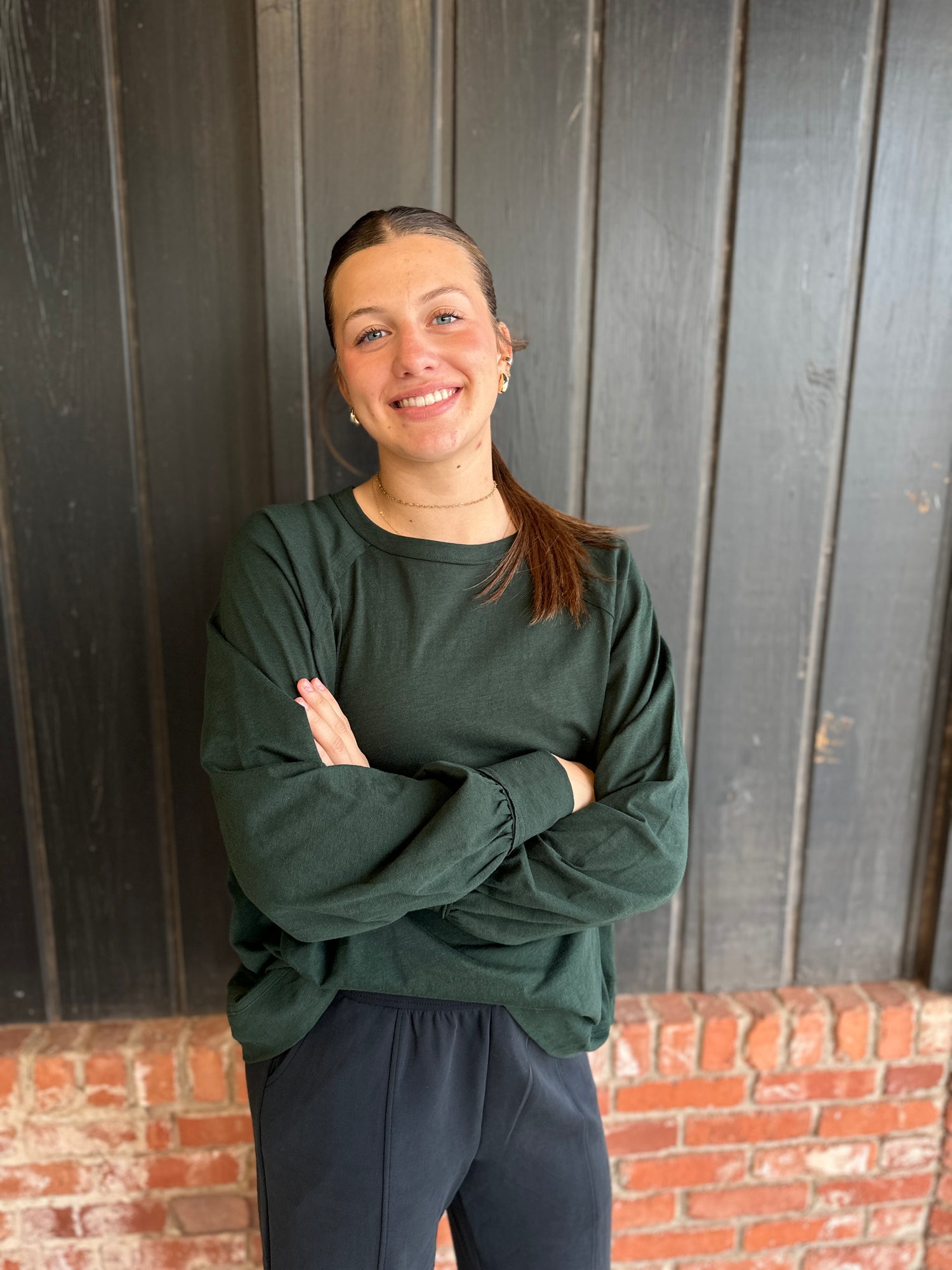 Regency Green Oversized Cotton Slub Long Sleeve Top