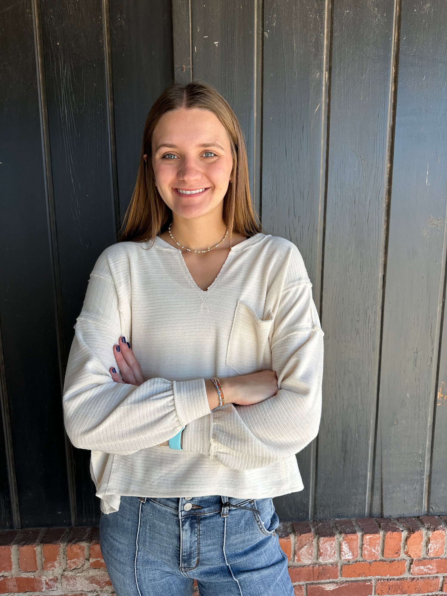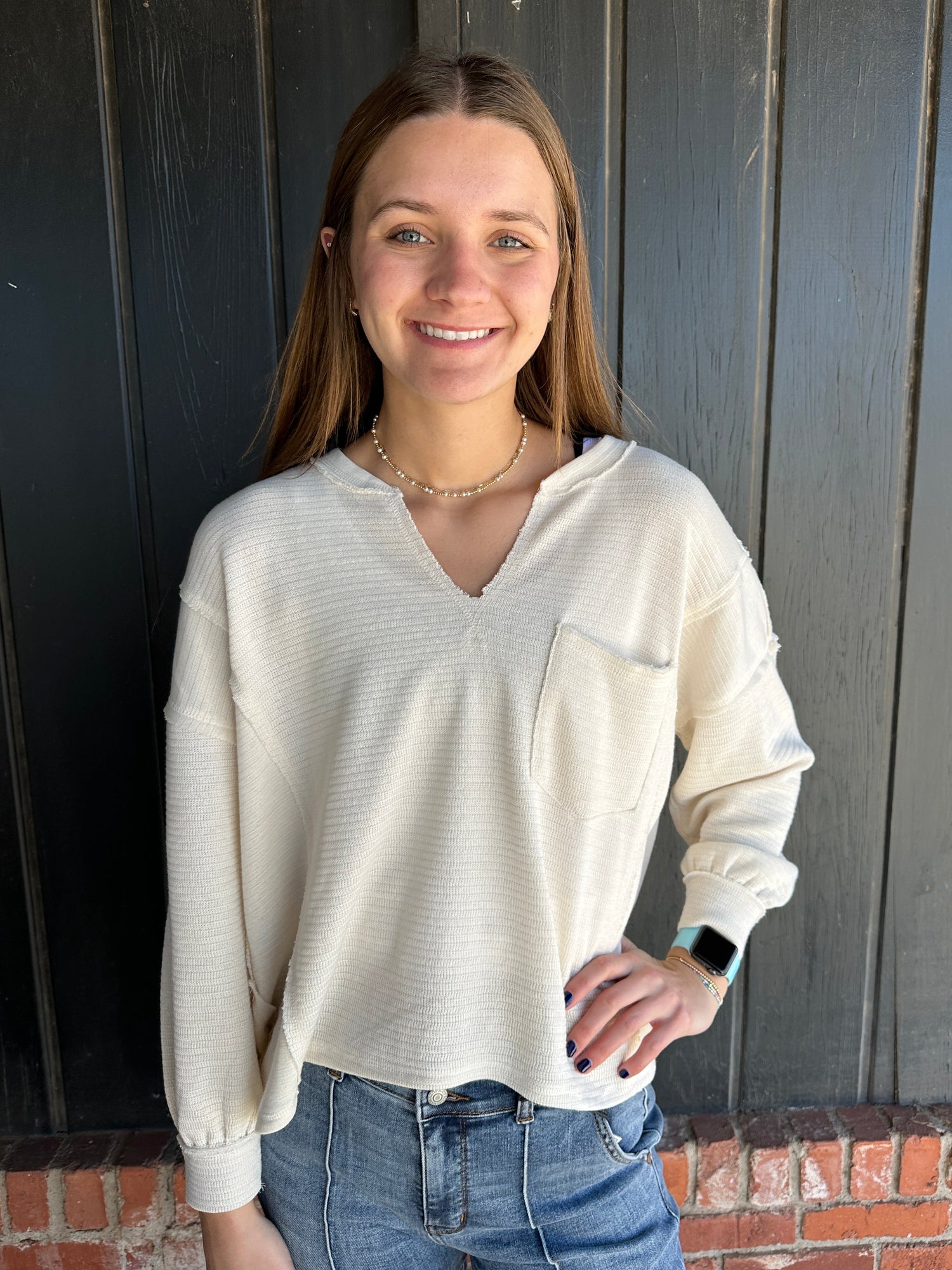 Notch neckline Split neckline Drop shoulder Relaxed fit Long sleeve Solid Knit top Not lined 97% polyester, 3% spandex