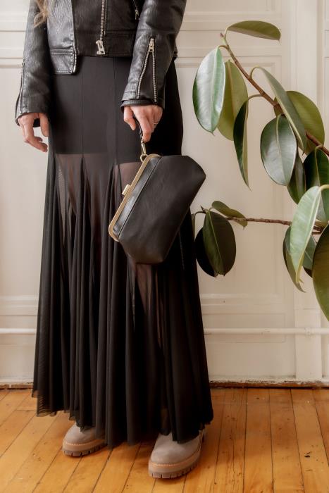 Retro styling meets modern convenience in this adorable bag made in soft vegan leather. Accented with a locking frame in a rich brass finish, this small bag is just the right size to hold your phone, keys and more! Inside you will find multiple credit card pockets and a zip pocket all fashioned in a dainty floral print lining to help keep you organized and secure. You can carry the Vivie as a clutch, by the detachable wristlet strap or by the detachable shoulder strap as a crossbody when you want to be hands free.