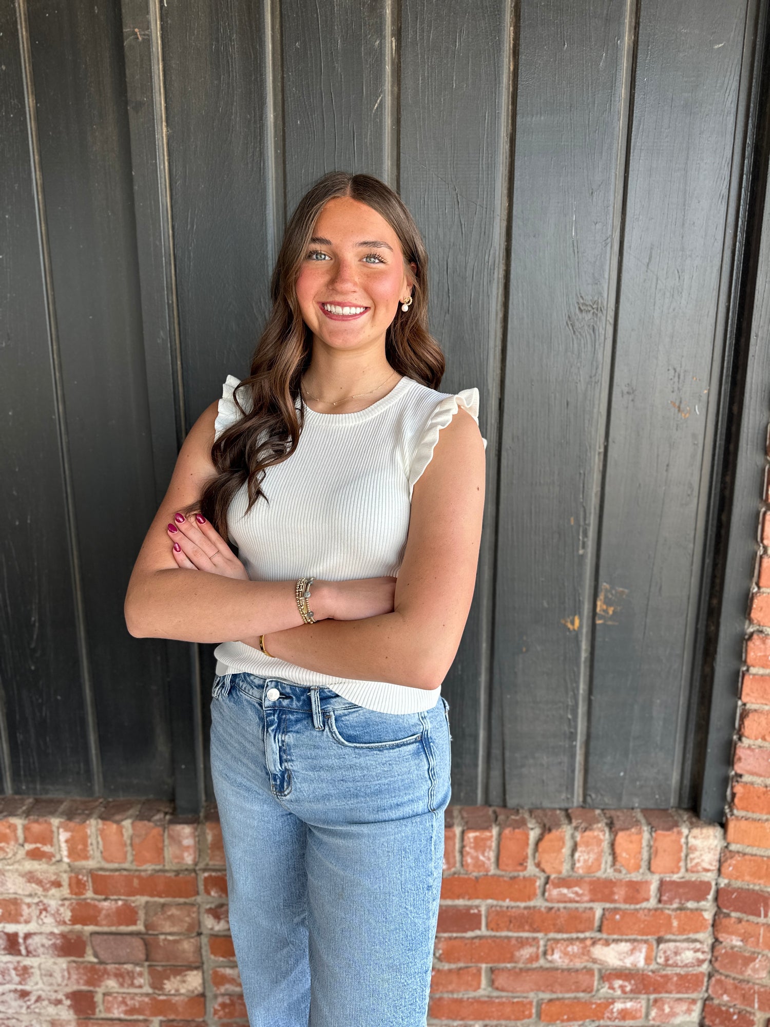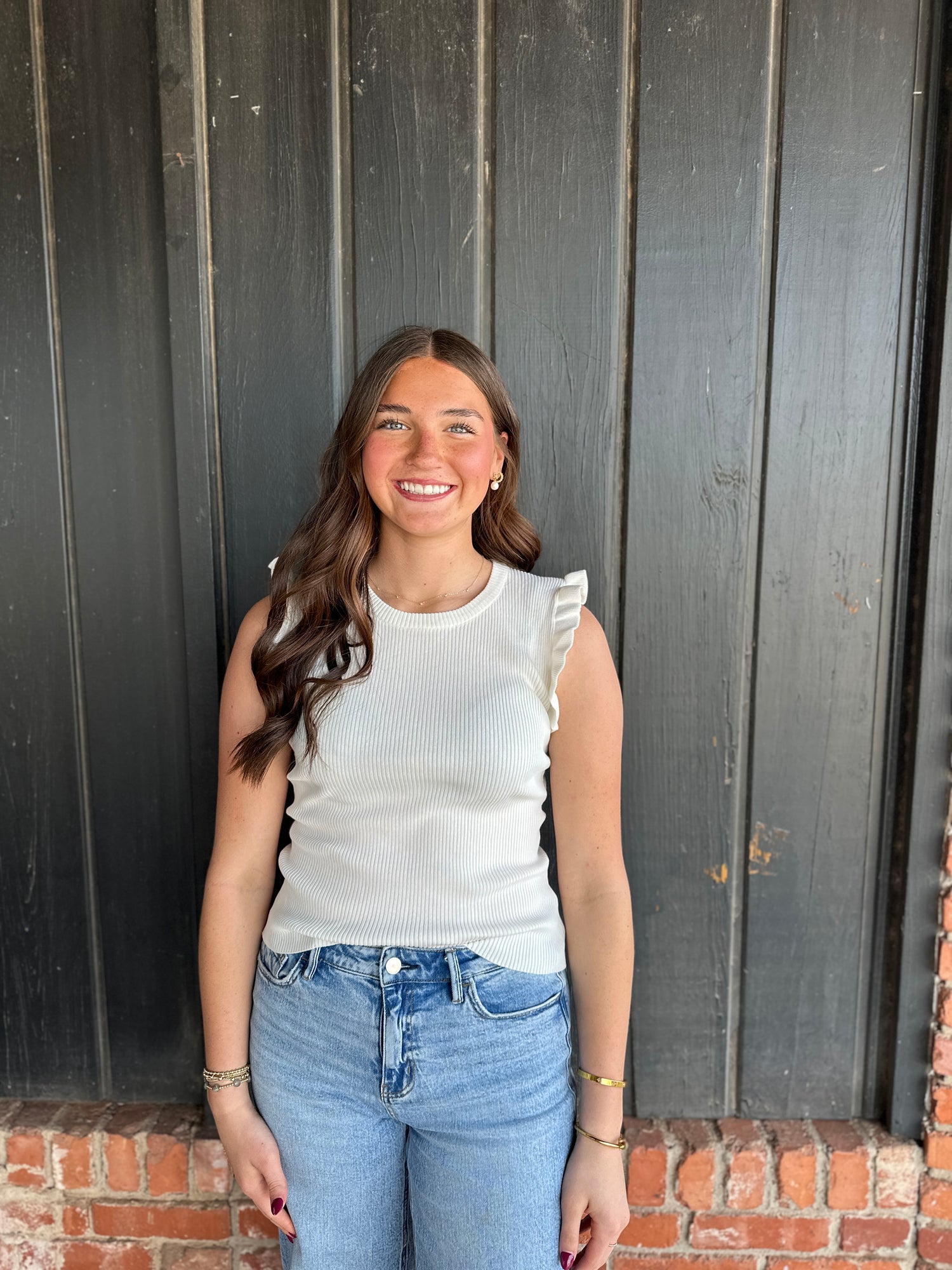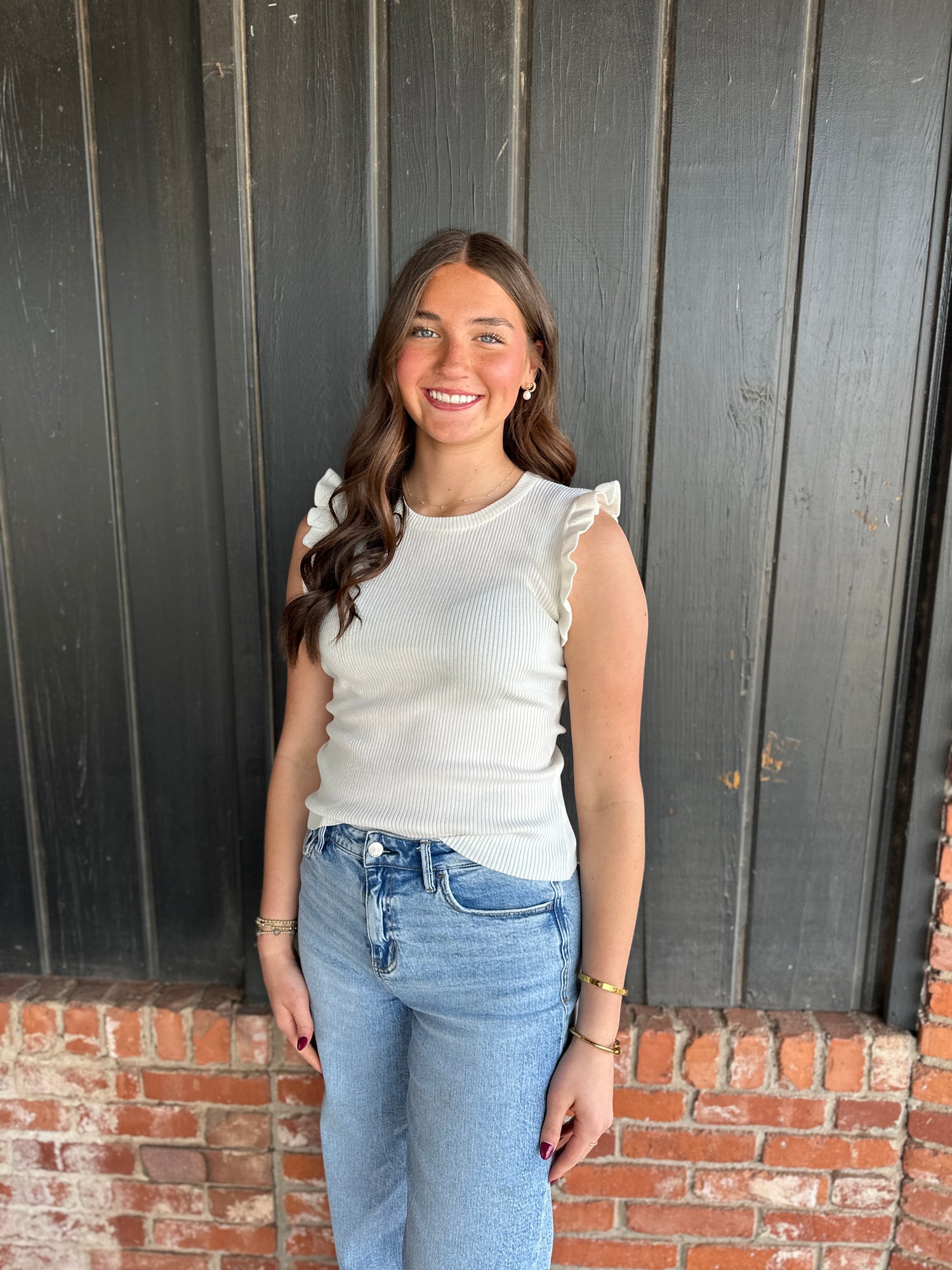 White Ruffle Sleeveless Sweater Knit Top